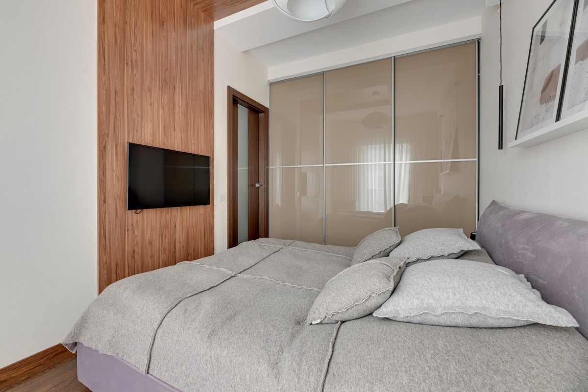 Sam apartament, położony na 4 piętrze, oferuje 75,6 m2 pełne ciepła i przytulności. Składa się z przestronnego salonu z aneksem kuchennym, WC, sypialni, pokoju dziecięcego, garderoby oraz łazienki z prysznicem, wanną i WC. Duży balkon z wyjściem z salonu i drugi, mniejszy z wyjściem z sypialni i pokoju dziecięcego, to idealne miejsce na chwile relaksu i wspólnego spędzania czasu.