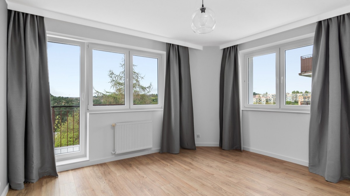 Mieszkanie zlokalizowane na drugim piętrze, dwustronne, bardzo dobrze doświetlone światłem dziennym. Na powierzchni 108,5 m2 do dyspozycji mamy 5 pokoi (z dwóch wyjście na duży balkon, z którego rozpościera się widok na panoramę miasta i okolicy) kuchnię z dużą jadalnią, dwie łazienki, każda z kabiną prysznicową. Mieszkanie świeżo po remoncie, nie zamieszkałe. Kuchnia wyposażona w niezbędne sprzęty AGD, pokoje wymagają umeblowania.