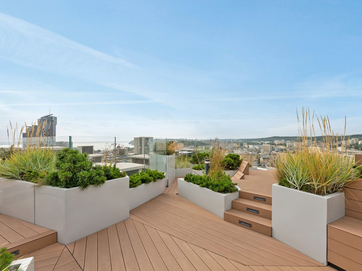 Duże przeszklenia salonu gwarantują piękny widok na morze. Doceni go każdy, kto ceni ponadczasowość, nowoczesność, a jednocześnie istotne są dla niego walory widokowe. W nieruchomości zainstalowany został inteligentny system zarządzania apartamentem w celu zdalnego sterowania oświetleniem, temperaturą w grzejnikach, klimatyzacją, czy wewnętrzną kamerą.