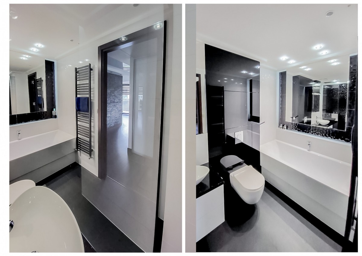 Apartament zachwyca spójną aranżacją i unikalnym wystrojem. Składa się z dużej, otwartej przestrzeni dziennej z częścią jadalną, wkomponowanej kuchni, sypialni oraz przestronnej łazienki z wanną i dużą kabiną prysznicową. Hol z obszerną garderobianą szafą i osobną szafą na buty doskonale organizuje przestrzeń. Pierwotnie zaplanowany jako trzypokojowy, został przearanżowany na przestronny apartament z dwoma pokojami. Doskonałe doświetlenie w godzinach popołudniowych, dzięki wschodniej i południowej ekspozycji, nadaje każdemu zakątkowi wyjątkowego blasku. Standard wykończenia apartamentu pozostawia bez wątpienia poczucie troski o detale i używanych materiałów. Zaprojektowany przez architekta, emanuje gustownością i estetyką. Mieszkanie jest dostępne do sprzedaży wraz z pełnym umeblowaniem i wyposażeniem, obejmującym sprzęt AGD najwyższej klasy, takie jak dwudrzwiowa lodówka z kostkarką SIEMENS czy grzejniki podłogowe FLK. Lokalizacja apartamentu na końcu korytarza sprawia, że jest on cichy, ponieważ jest położony z dala od windy oraz schodów.