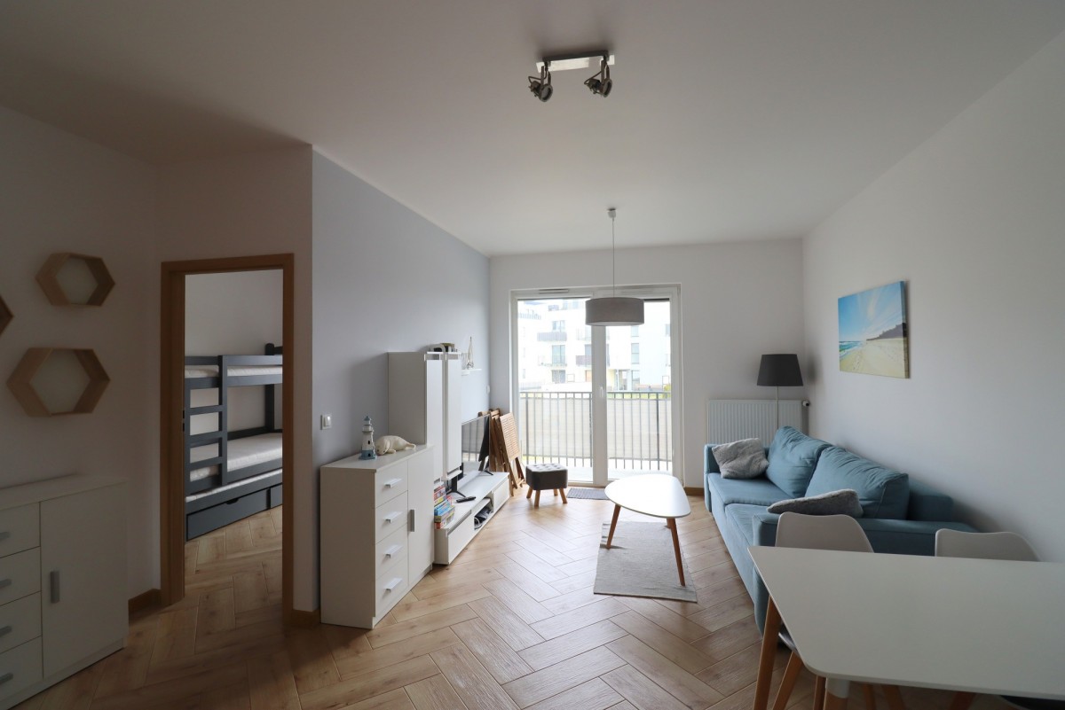 - Przestronny pokój dzienny z bezpośrednim wyjściem na duży balkon,