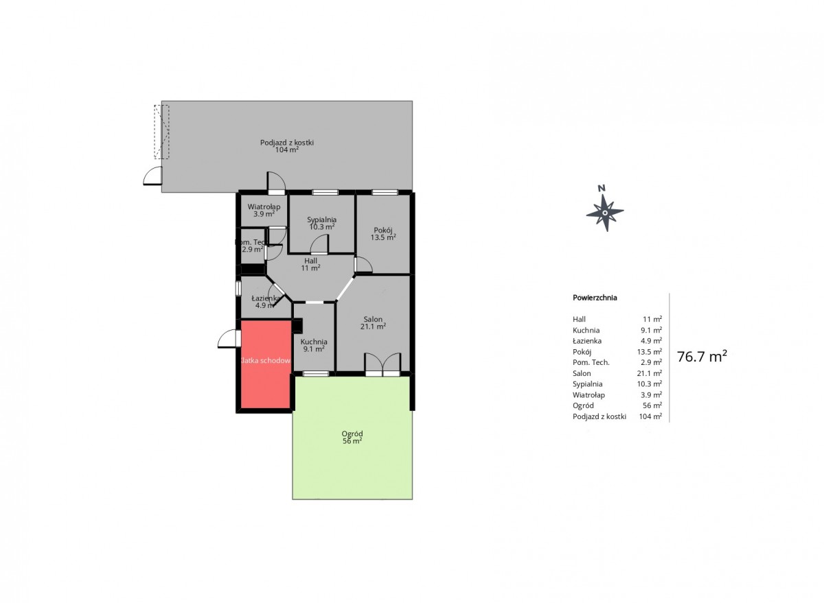Mieszkanie o powierzchni 76,77 m2 składa się z: