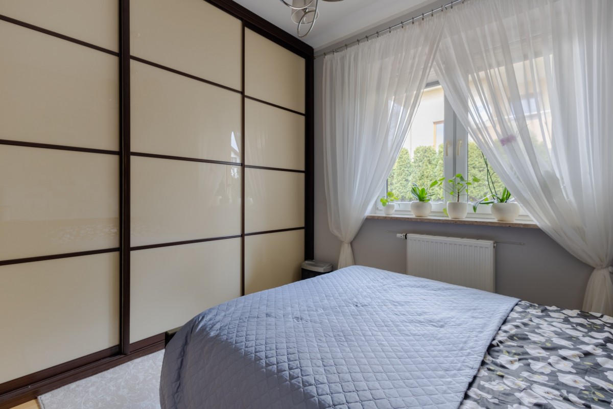 - Większej sypialni (13,52 m2) z pojemną szafą zrobioną na wymiar.