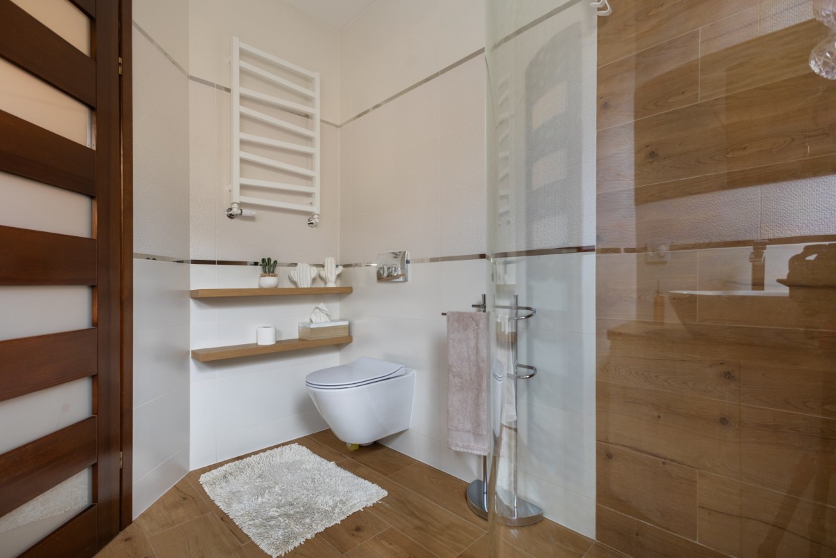 - Ogrzewanie podłogowe w korytarzu, kuchni i łazience.