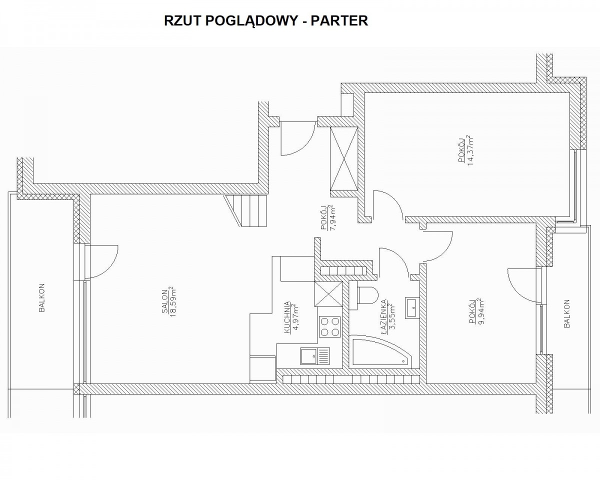 PARTER: salon z aneksem kuchennym i wyjściem na balkon