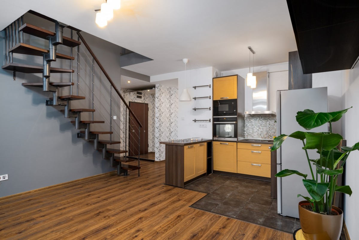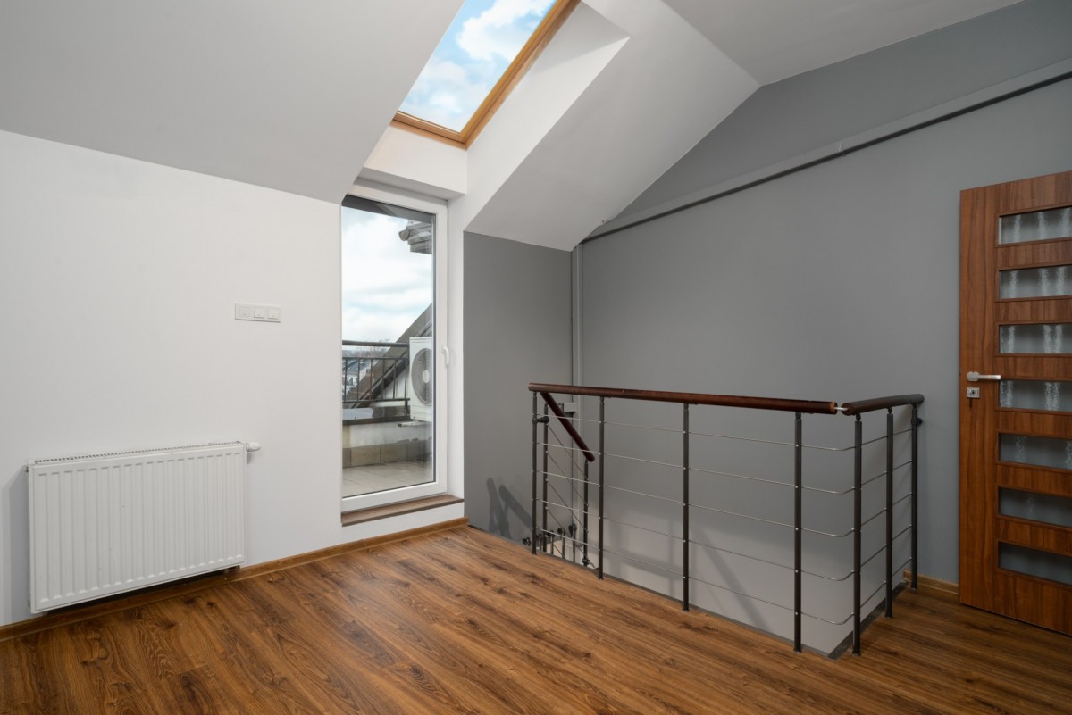 Mieszkanie ma antresolę, dzięki czemu uzyskano 2 poziomy