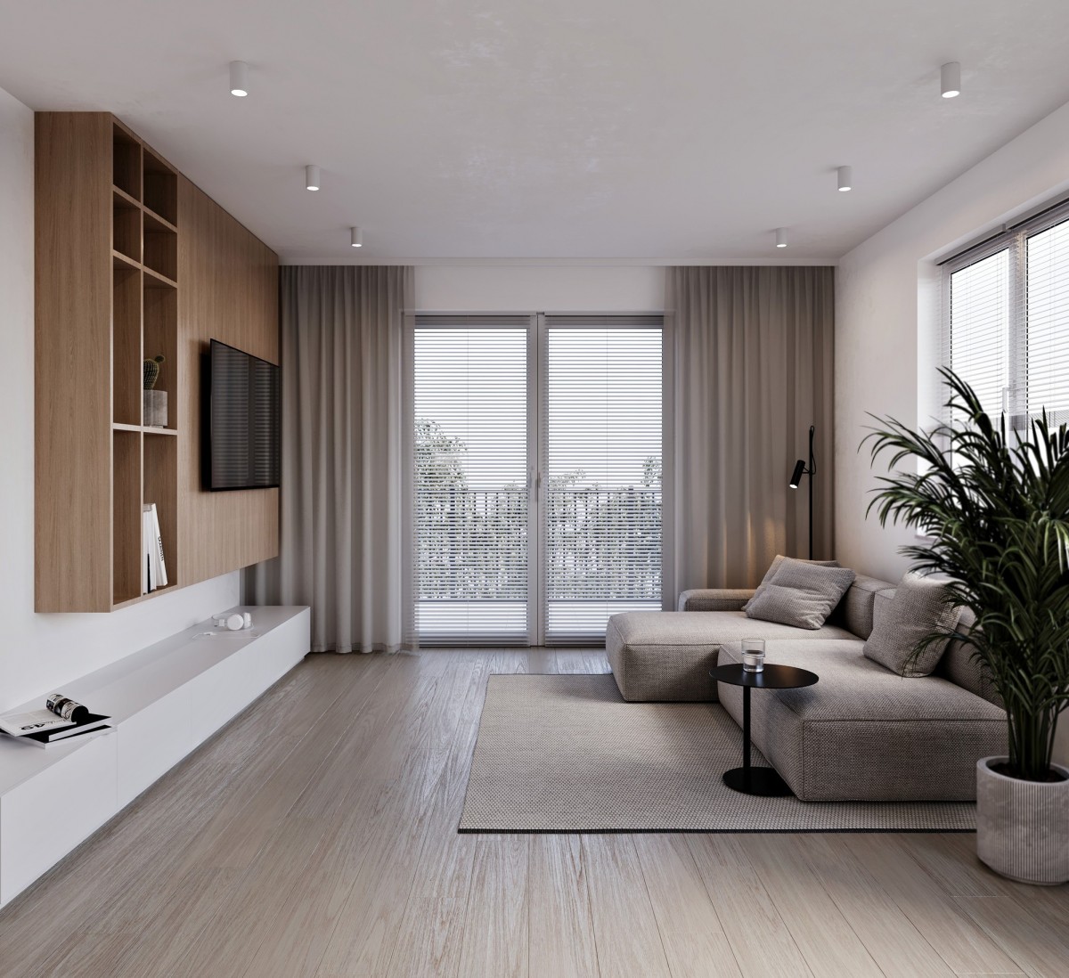 Mieszkanie znajduje się w nowopowstałej inwestycji M Bemowo, zrealizowanej przez francuskiego dewelopera Bouygues Immobilier Polska, składającej się z 3 kameralnych budynków o architekturze inspirowanej warszawskim modernizmem. Biały tynk elewacji połączony z dekoracyjną, pionową płytką klinkierową nadaje całości minimalistyczny, a przy tym elegancki wygląd.