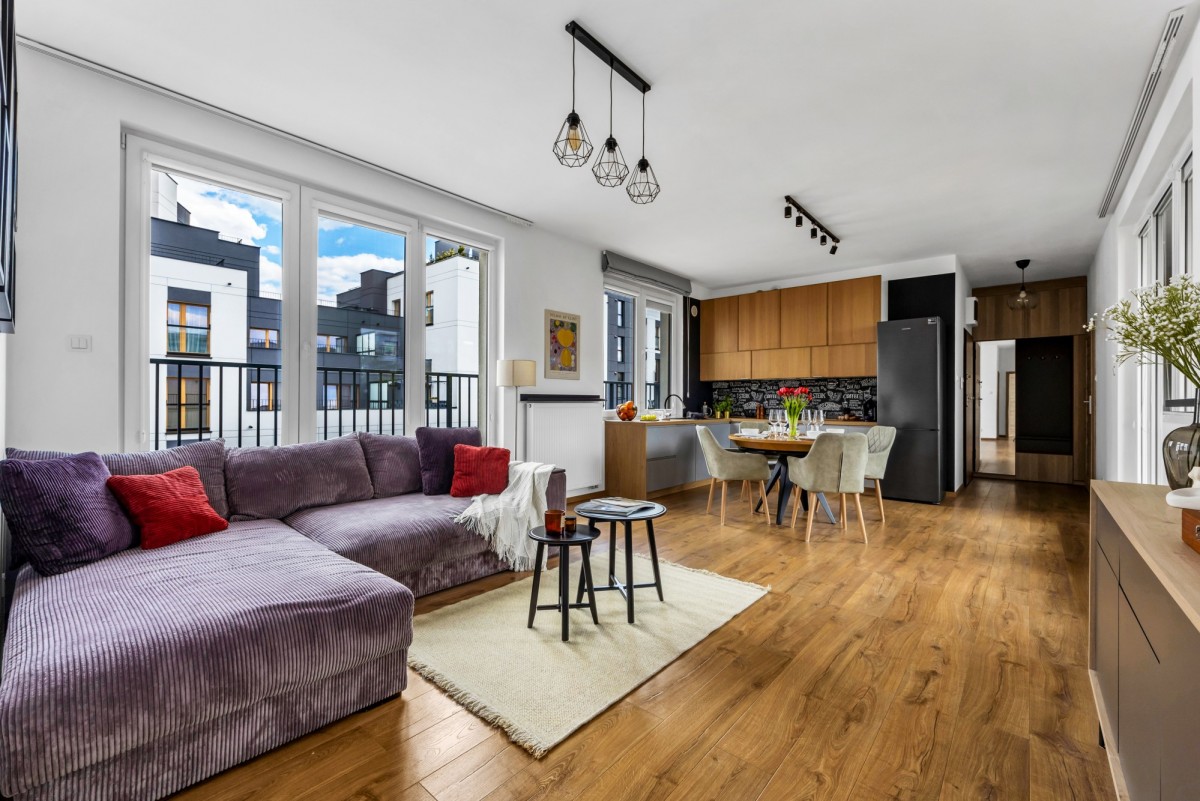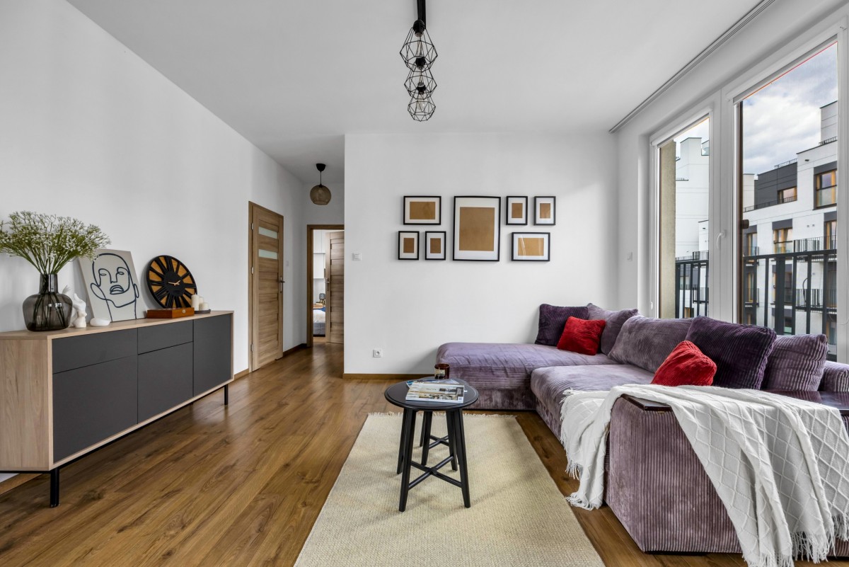 Mieszkanie zlokalizowane jest w dynamicznie rozwijającej się części Warszawy, co zapewnia łatwy dostęp do licznych usług, szkół i przedszkoli. Bliskość planowanej stacji metra Lazurowa oraz głównych arterii komunikacyjnych, jak trasa S8, gwarantuje świetne połączenie z resztą miasta oraz szybki wyjazd poza Warszawę.