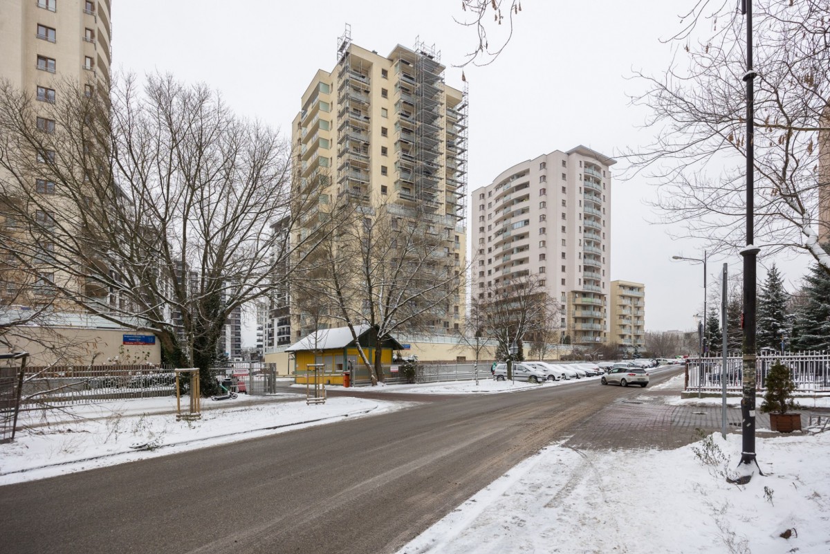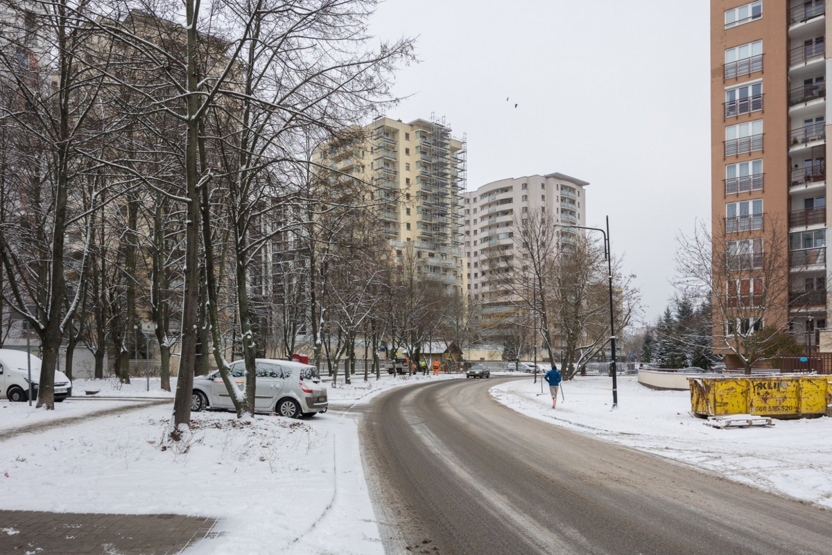 Przytulne dwupokojowe mieszkanie na warszawskich Bielanach położone na czwartym piętrze w bloku 15 piętrowym z 2008 roku przy ulicy Bogusławskiego 19.