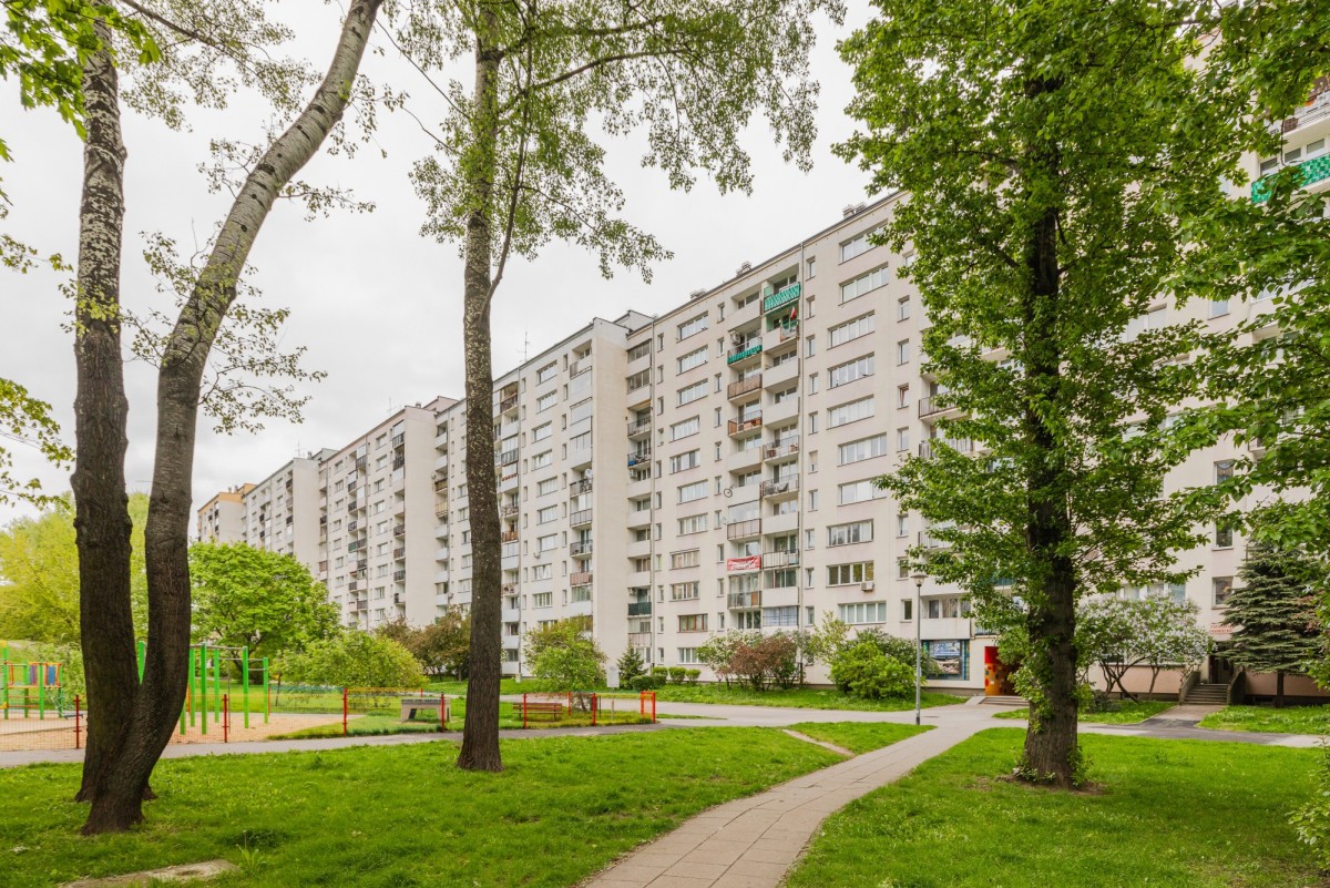 Okna wychodzą na dużą otwartą i zieloną przestrzeń między budynkami, mieszkanie jest ciche i jasne.