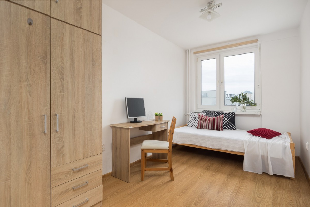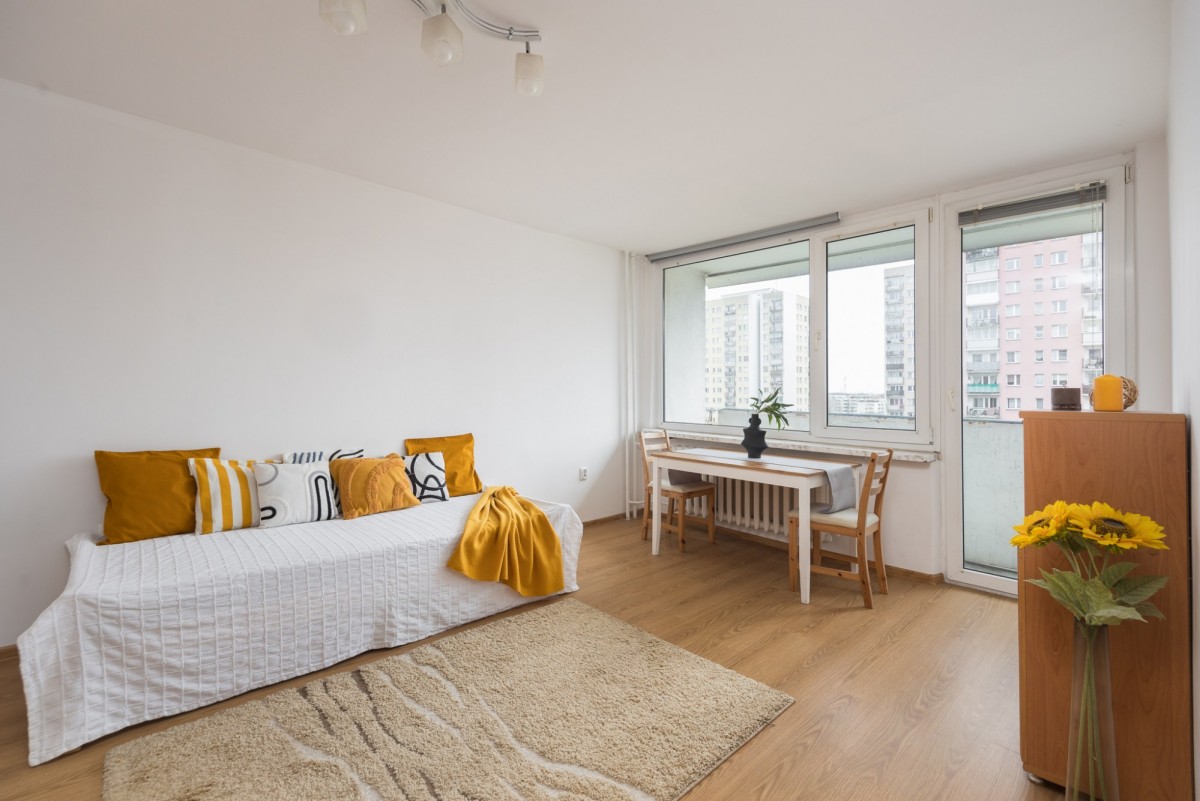 Przytulne trzypokojowe mieszkanie na warszawskich Bielanach położone na siódmym piętrze w bloku 10 piętrowym przy ulicy Czechowa 2.