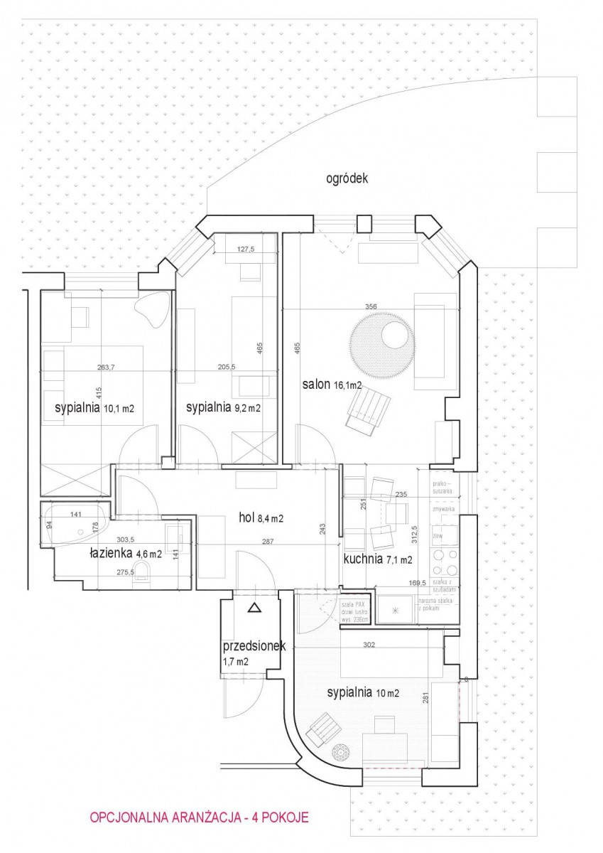 Duża sypialnia 17,5 m2 daje możliwość zabudowy dużej szafy garderobianej. Druga sypialnia 10m2.