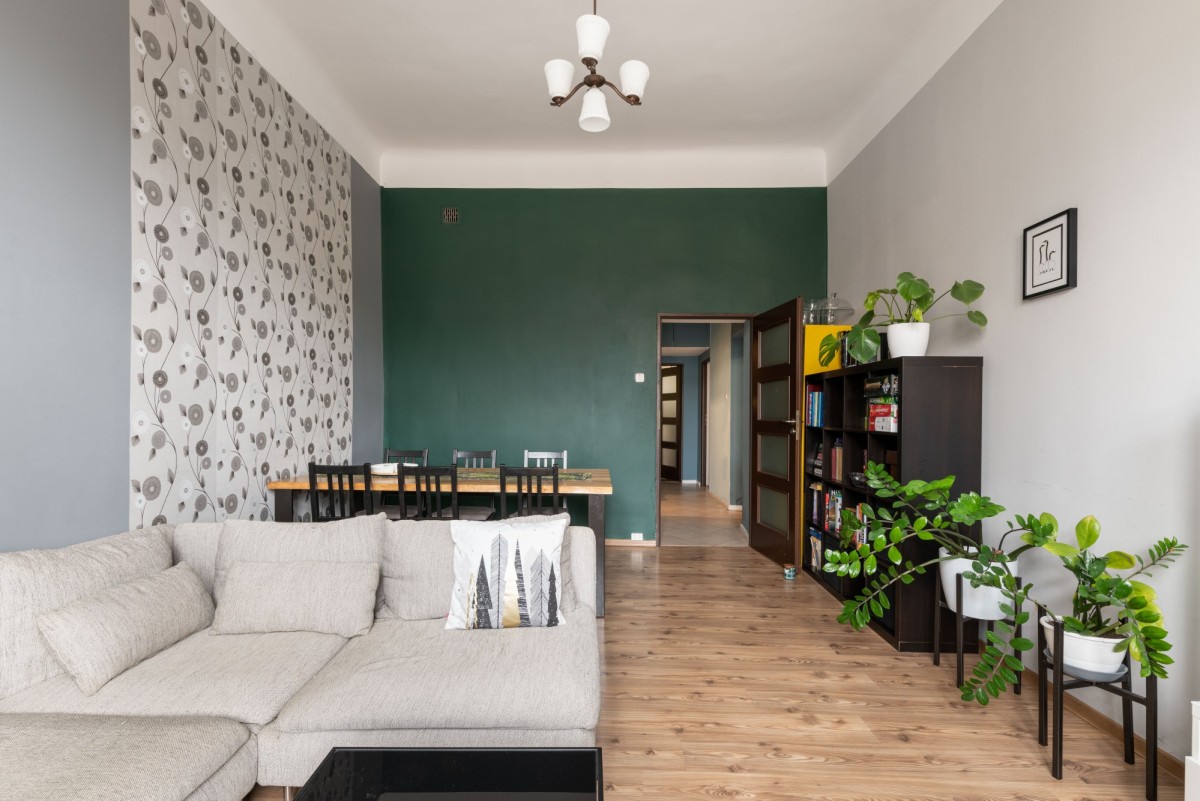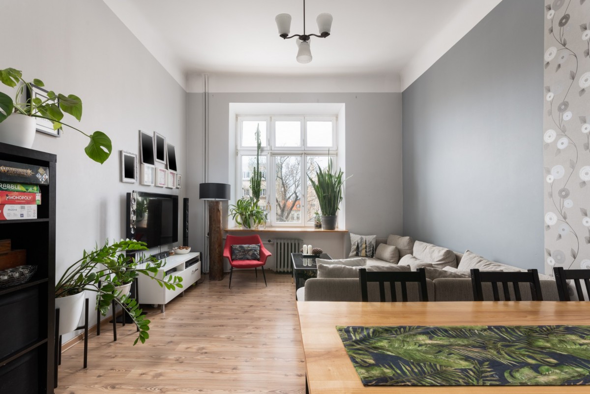 Dwustronne, rozkładowe mieszkanie położone na drugim piętrze czteropiętrowej kamienicy wzniesionej w 1910 roku bez windy.