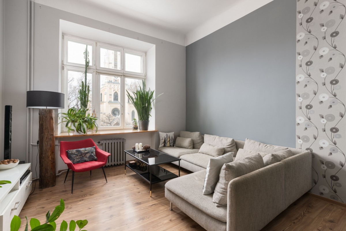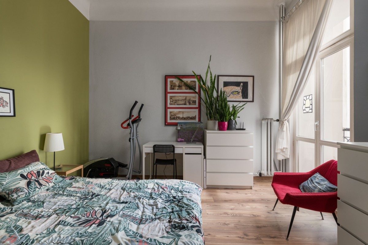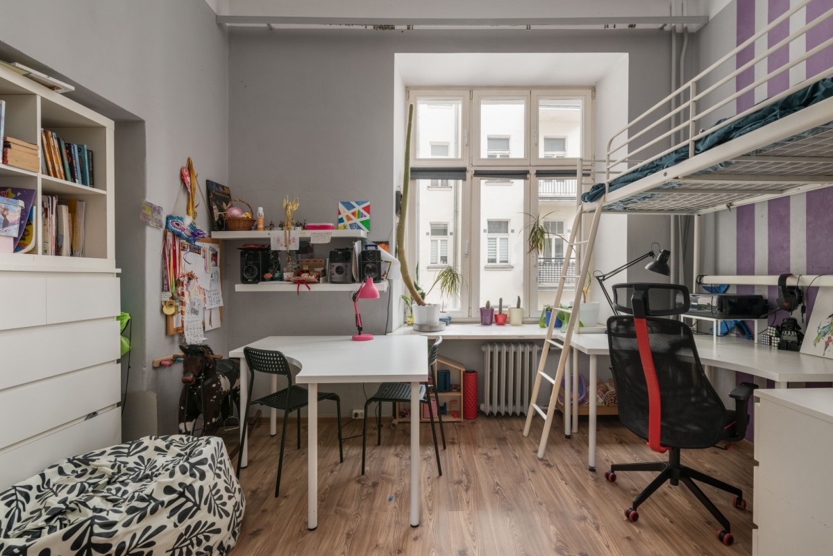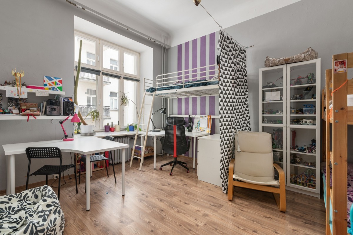 Sypialnie (20 i 16 m2) z ekspozycją południową są ciche i pełne słońca, salon (22 m2) skierowany na północ z widokiem na zabytkowy Kościół Ewangelicko-Reformowany.