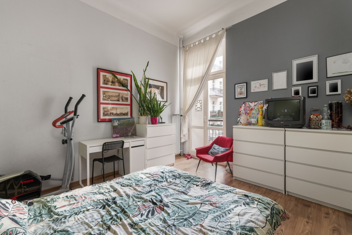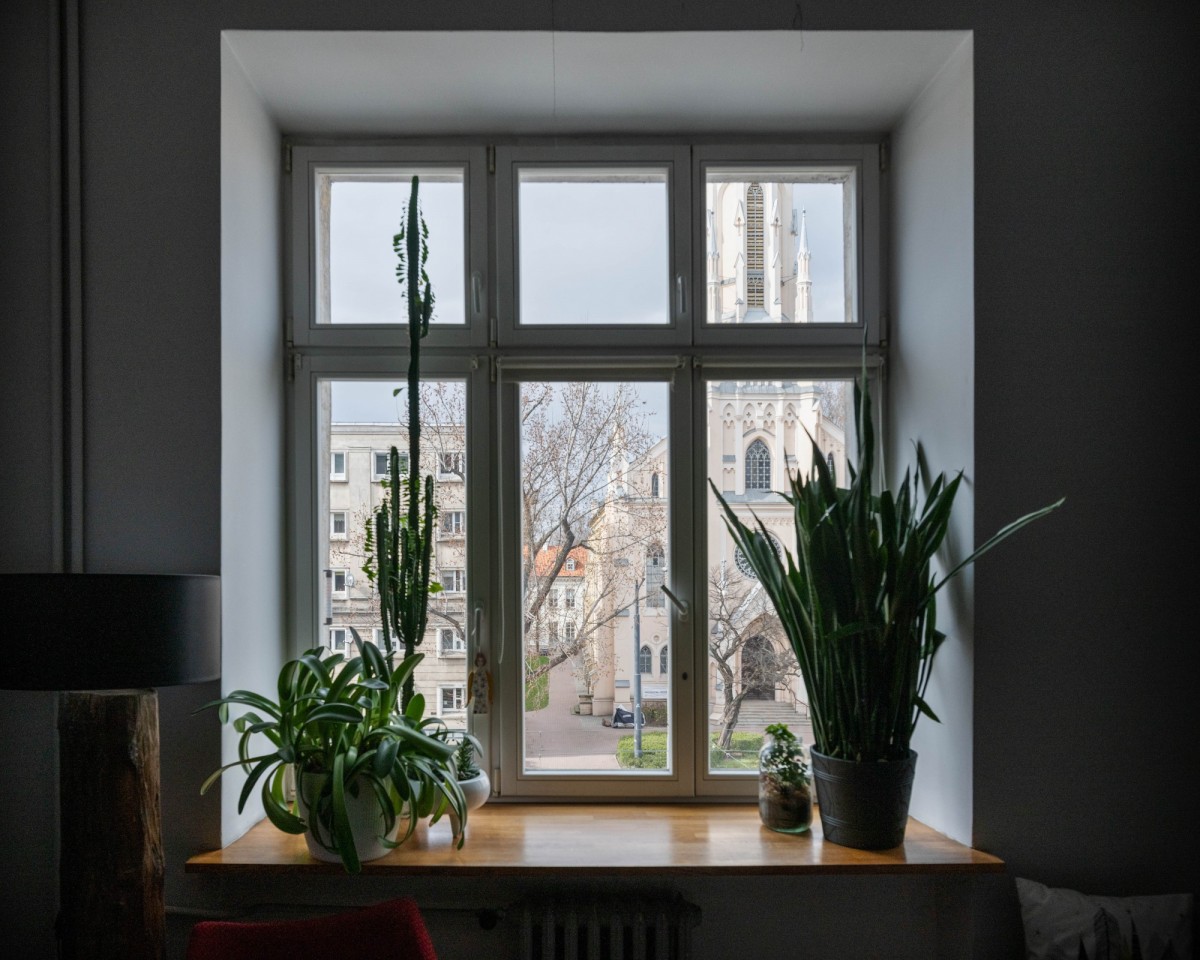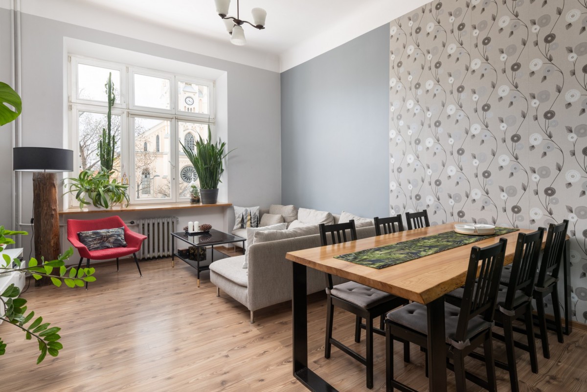 Sypialnie (20 i 16 m2) z ekspozycją południową są ciche i pełne słońca, salon (22 m2) skierowany na północ z widokiem na zabytkowy Kościół Ewangelicko-Reformowany.