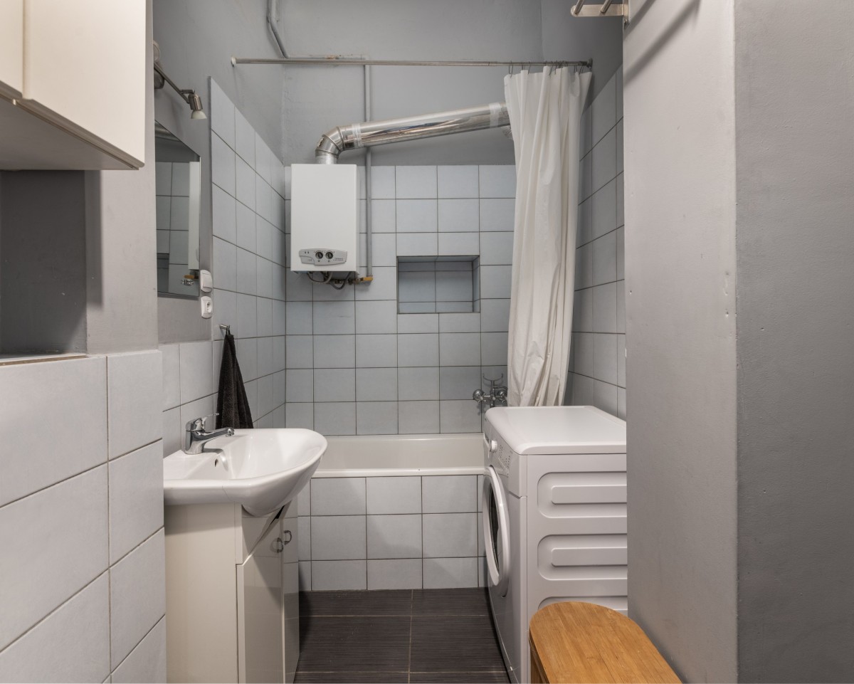 Przestronny salon, dwie przytulne sypialnie, balkon, kuchnia bez okien i łazienka z wanną. We wszystkich pomieszczeniach duże, nowoczesne, drewniane okna zapewniające dobre doświetlenie.