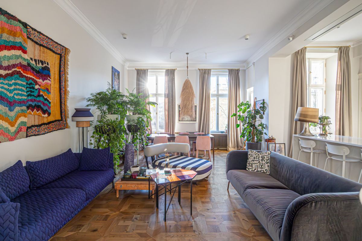 Na ponad 158 metrach kwadratowych, w klasycznym układzie podziału mieszkania w kamienicy: