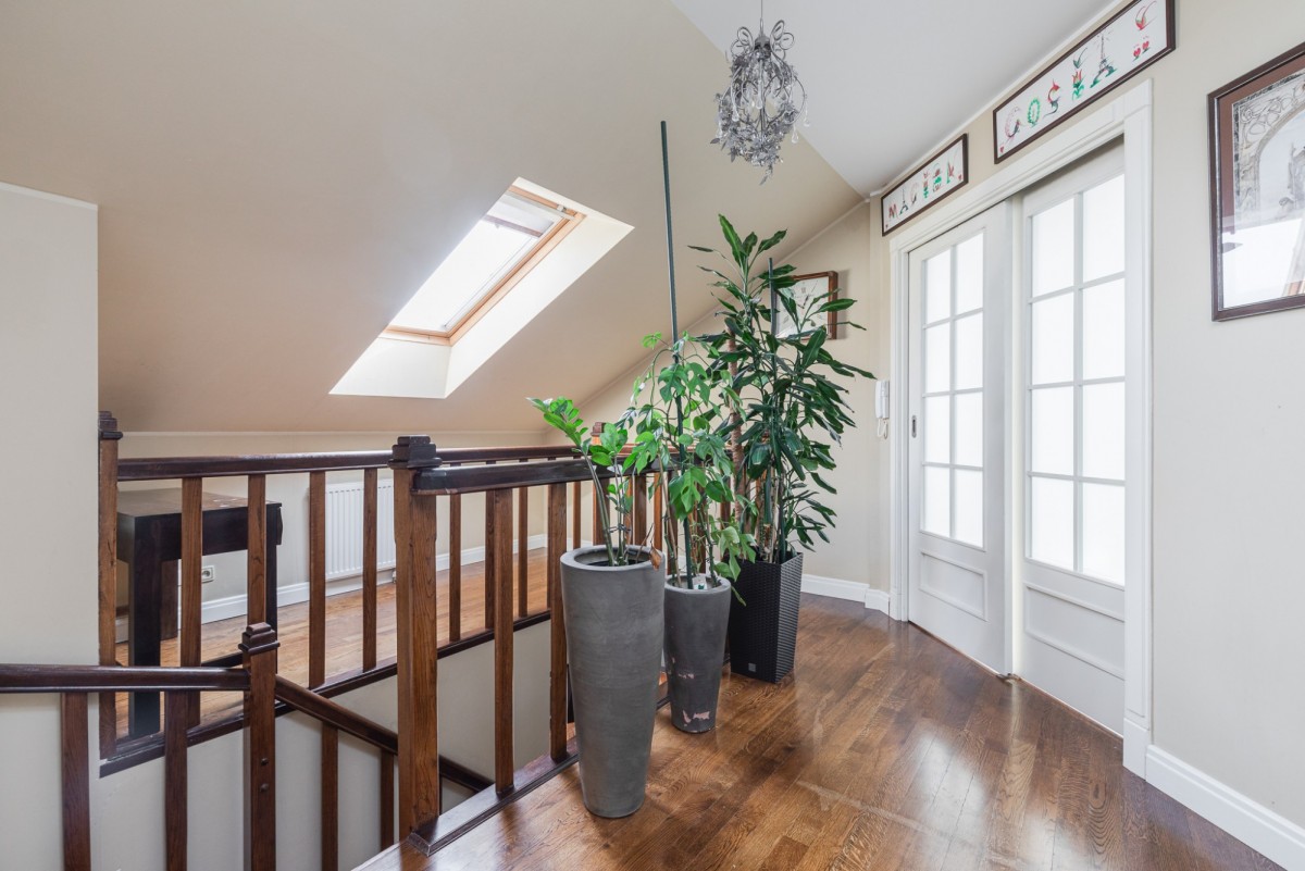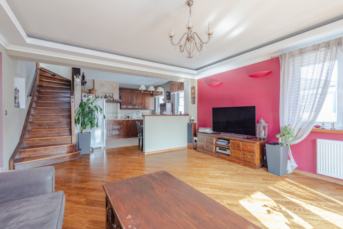 Na sprzedaż 4-pokojowe, dwupoziomowe mieszkanie o łącznym metrażu 136m2, zlokalizowane na 1 piętrze (bez windy) w kameralnej inwestycji w zabudowie jednorodzinnej z 2003r. przy ul. Fiołków w Starej Miłosnej.