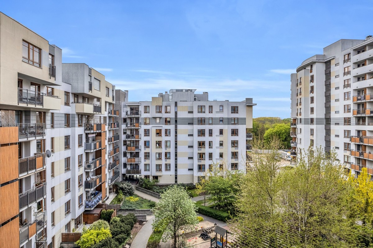 Mieszkanie znajduje się na 5. piętrze nowoczesnego budynku z 2008 roku, zlokalizowanego przy ulicy Szulborskiej 3/5, w prężnie rozwijającej się dzielnicy Wola, Odolany, tuż obok malowniczego parku Szymańskiego.