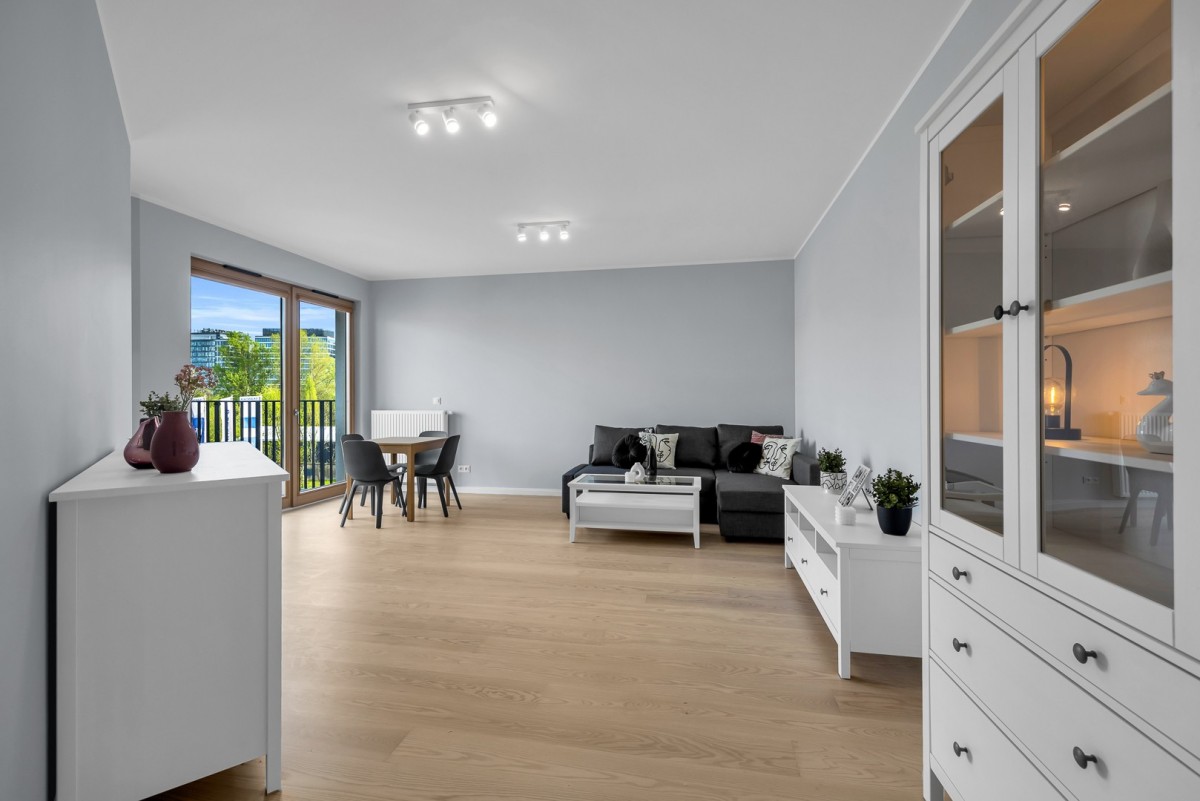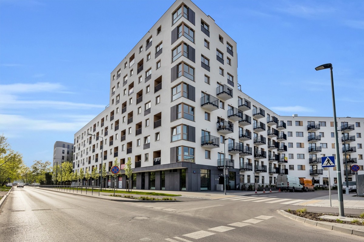 Mieszkanie posiada balkon, na które dostaniemy się z salonu. W parkingu podziemnym dostępne jest jedno standardowe miejsce parkingowego, do nabycia za dodatkową opłatą w wysokości 50 000 zł.