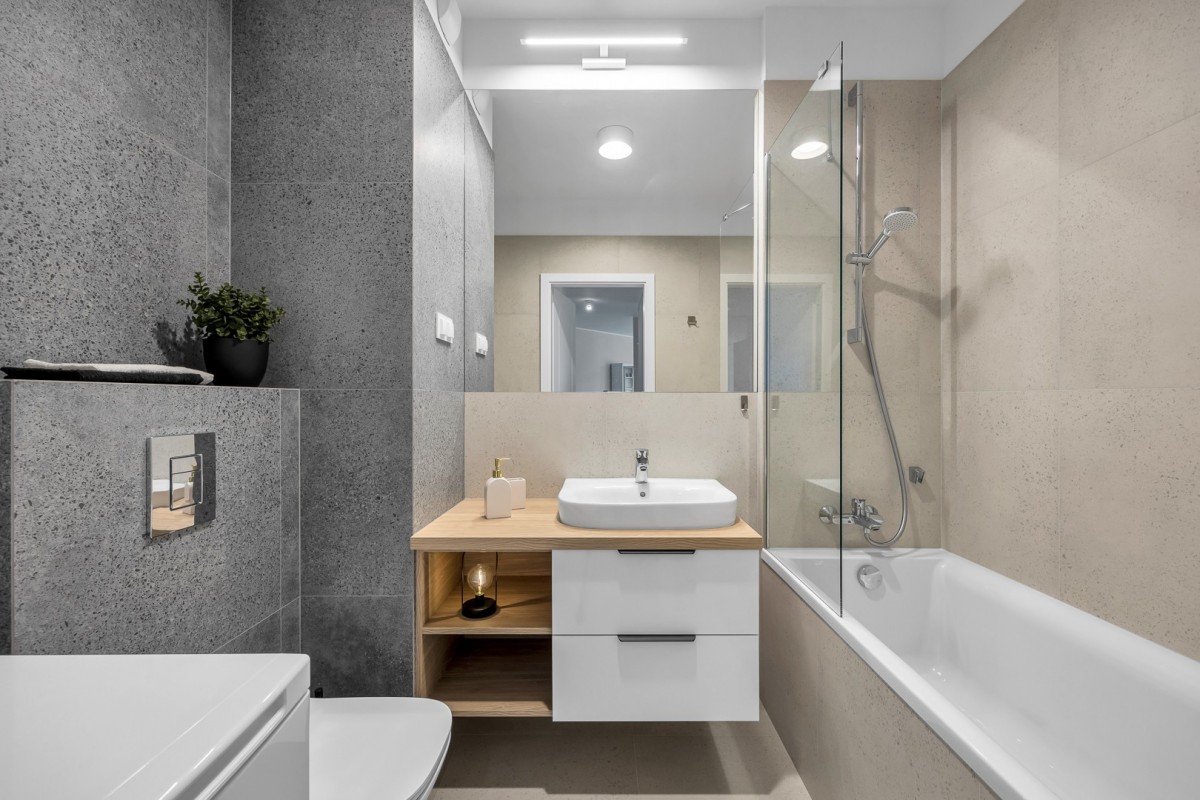 Łazienka (4,02 mkw) to oaza relaksu, jasna i klimatyczna, zaprojektowana z myślą o komforcie. Dwie ustawne sypialnie (10,65 mkw, 9,87 mkw), również wyposażone w meble - łóżko, szafa, szafki nocne, komoda sprawdzą się idealnie jako miejsca do komfortowego snu, a dla osób, które potrzebuję gabinetu, mniejszy pokój również dobrze spełni tę rolę. Duża ilość szaf w przedpokoju ułatwia organizację przechowywanych rzeczy i jest wkomponowana w całość wykończenia.