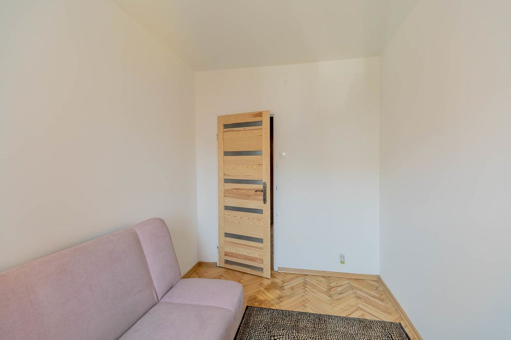 Dużym atutem jest dodatkowa przestrzeń 5,5m zaadaptowana na garderobę, która pozwala zachować porządek i wygodnie przechowywać wszystkie potrzebne rzeczy, przestrzeń została wydzielona z niegdyś korytarza, jako części wspólnej a takie rozwiązanie jest na każdym piętrze w budynku.