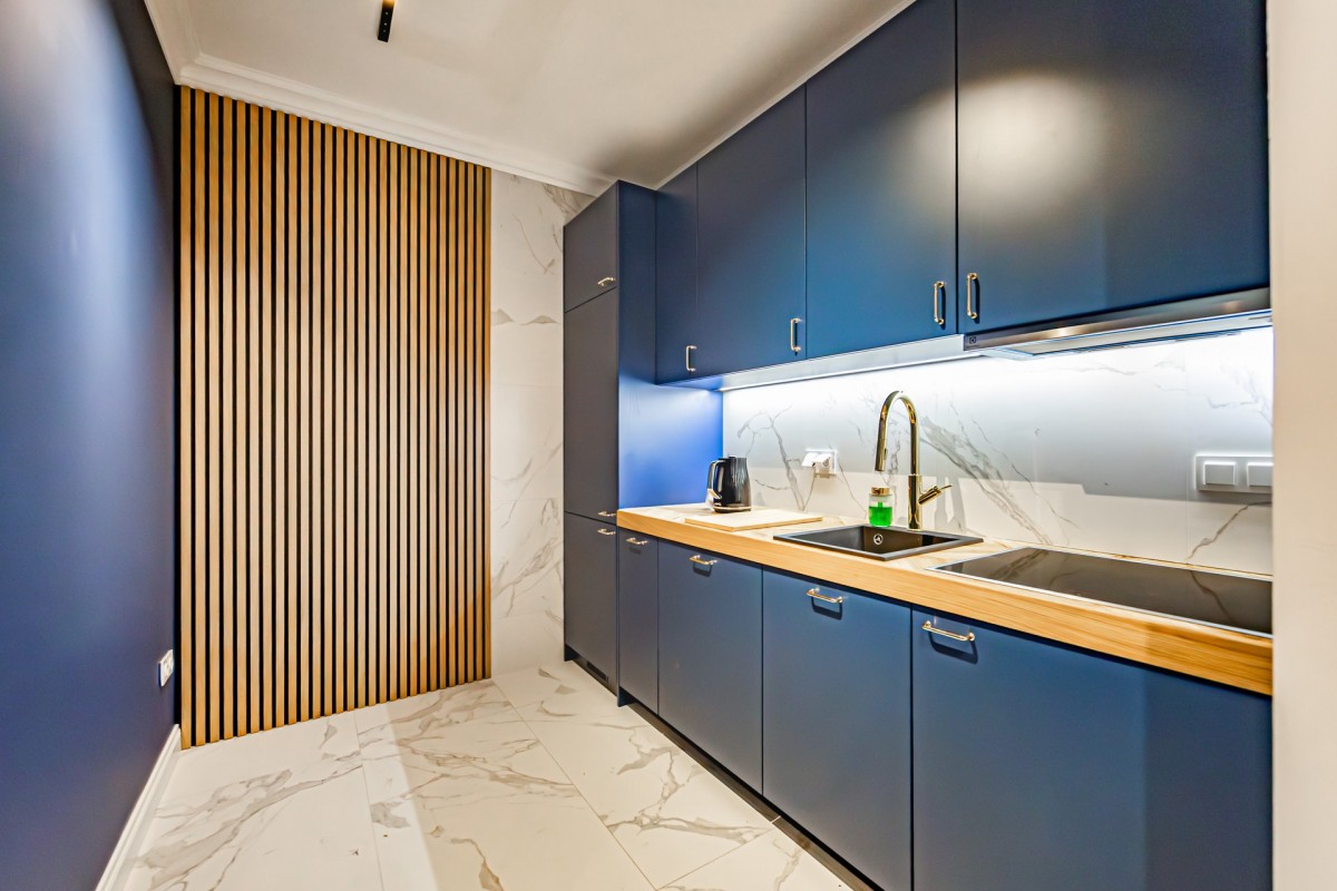 Mieszkanie jest nowe - nie było zamieszkane ani wynajmowane, zostało wykończone w dobrym standardzie. Lokal jest klimatyzowany. Kuchnia została wyposażona w zmywarkę, piekarnik i dużą lodówkę z zamrażarką. Elementem wyposażenia łazienki jest nowa pralka i suszarka. Dodatkowy atut stanowi przestronny zadaszony balkon. Mieszkanie jest widne i ciche.
