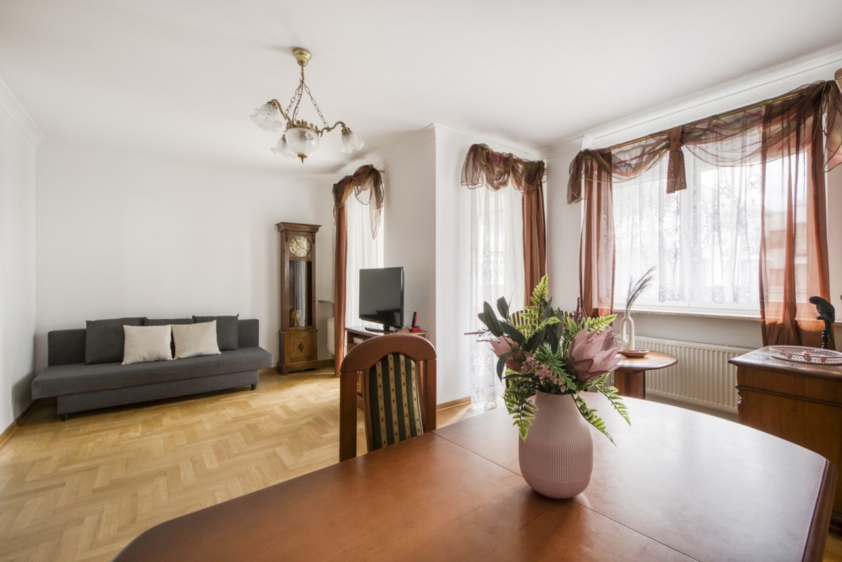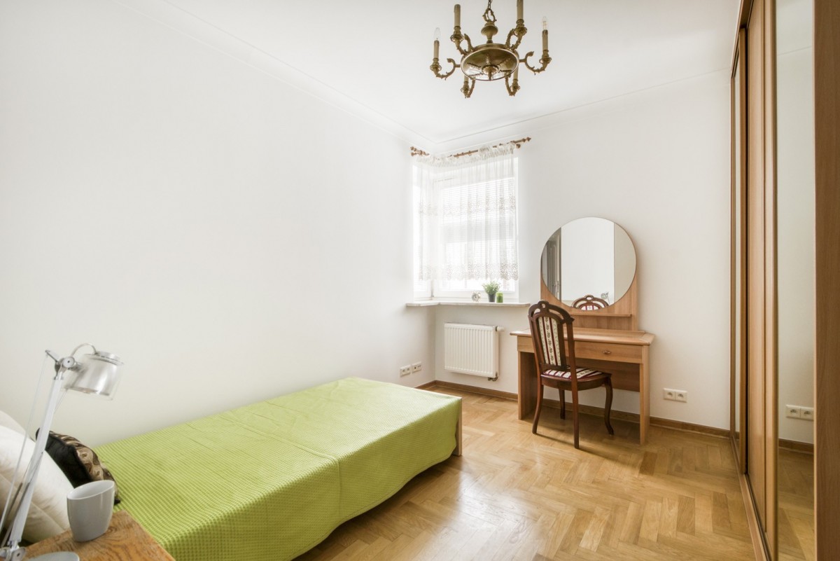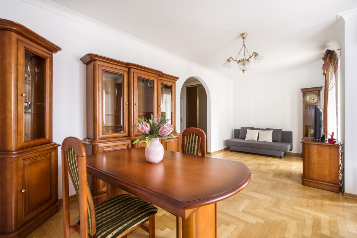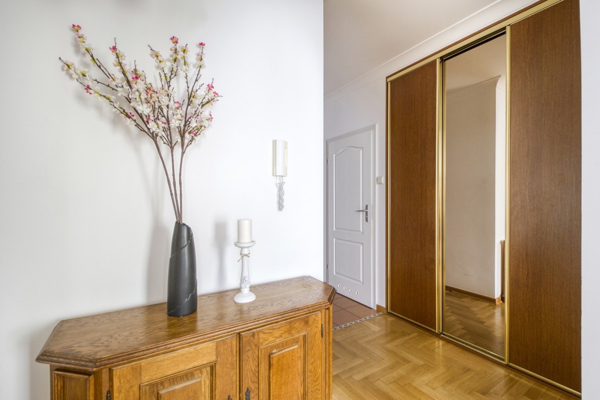 Przede wszystkim funkcjonalny rozkład, idealny dla Rodziny. Mieszkanie położone jest w spokojnej, ale dobrze wyposażonej w elementy infrastruktury części Mokotowa, zaledwie 150 metrów mamy do przystanku autobusowego, gdzie w 20 min. dojedziemy do metra lub centrum miasta. Ekspozycja okien na północny-wschód, na wewnętrzne patio, co daje mieszkańcom upragniony spokój. Na wyposażeniu znajdziemy wszystkie potrzebne sprzęty oraz meble do dyspozycji najemców.