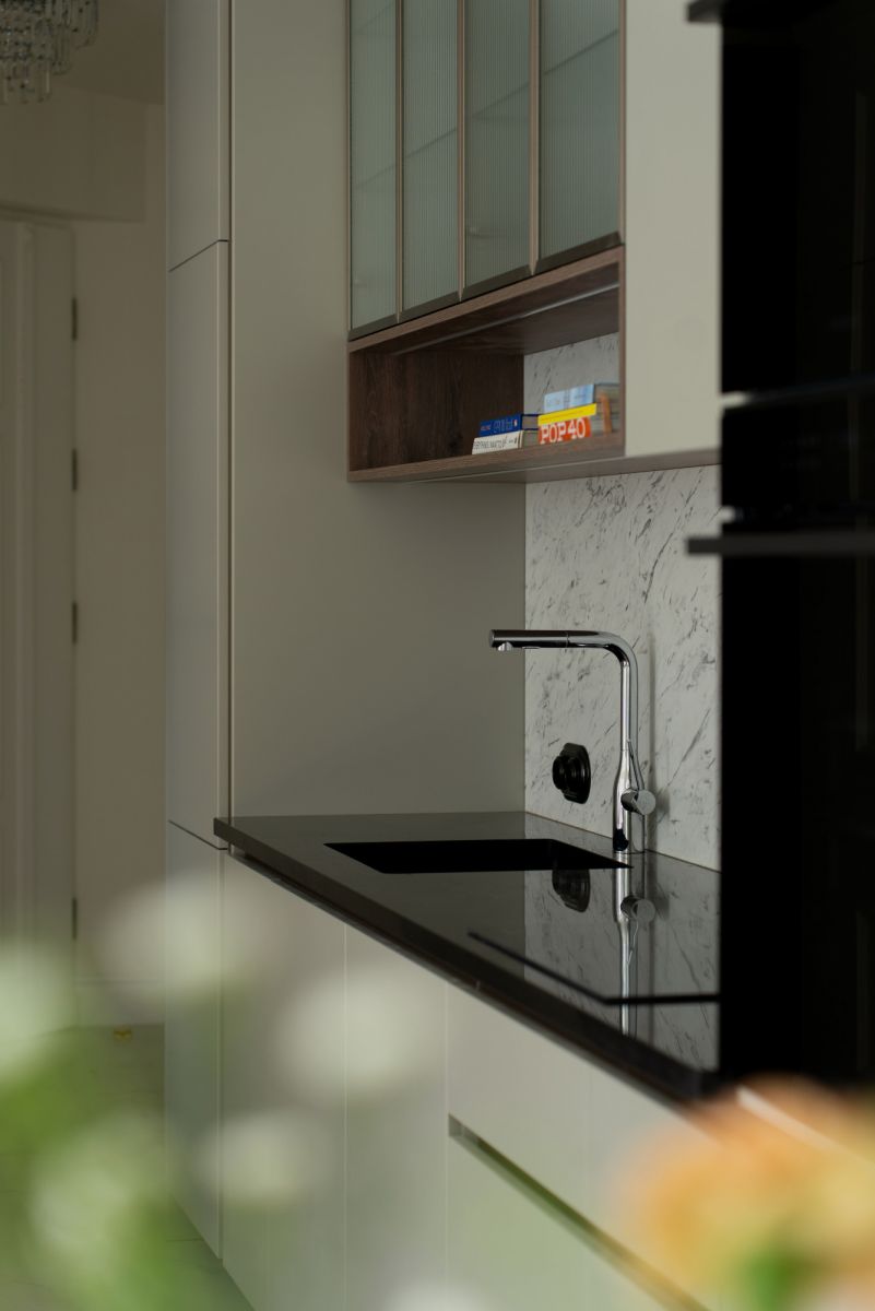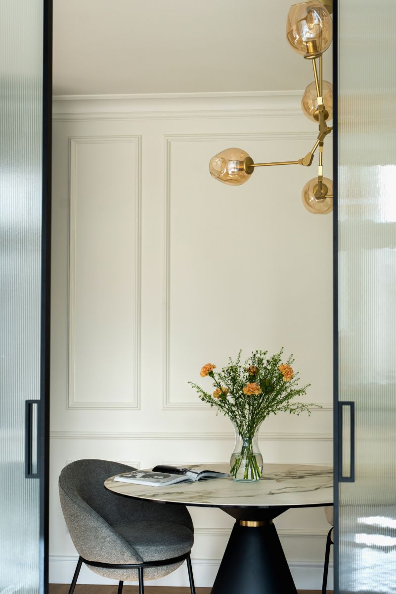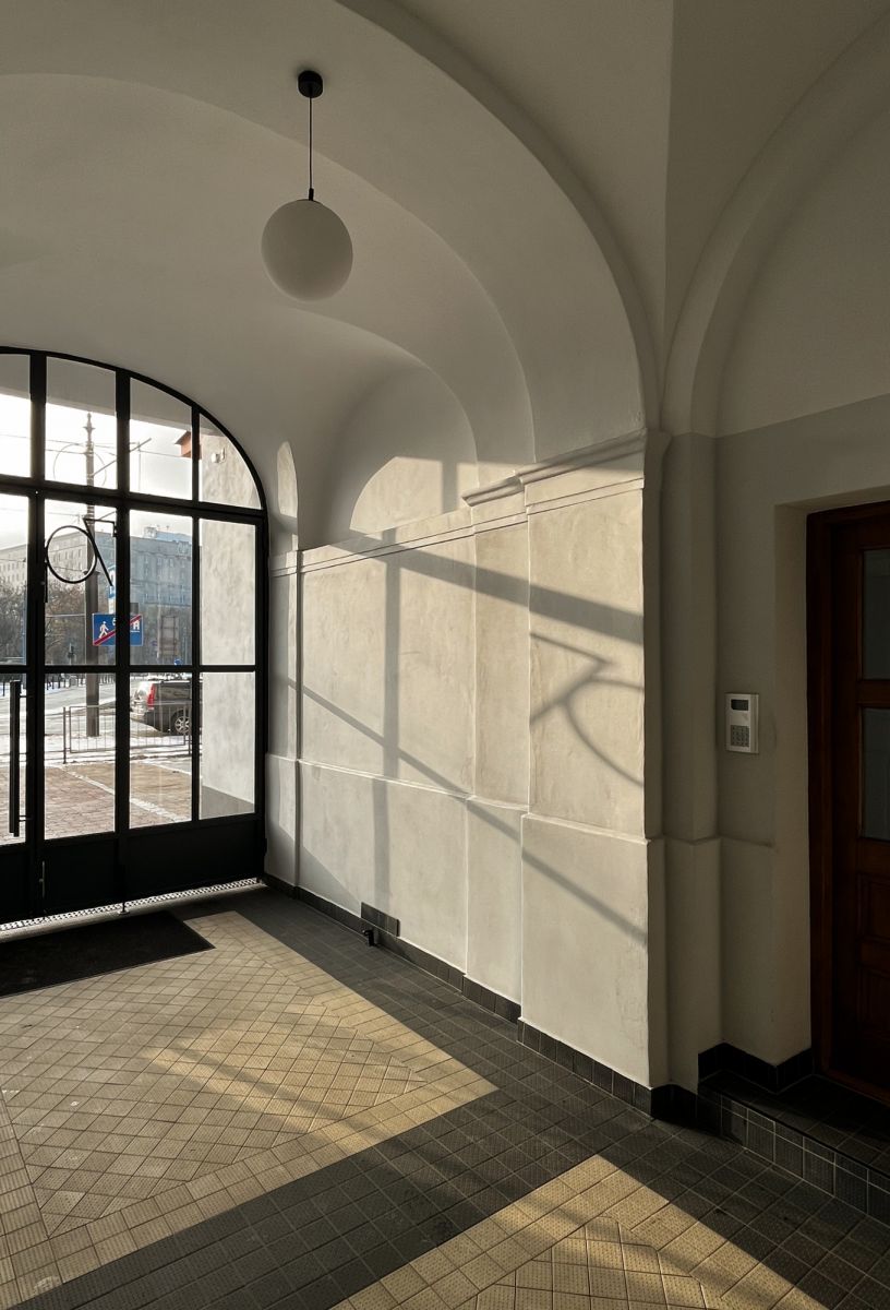 The building is located on Filtrowa Street, while the flat itself is located in the annexe. Thanks to its location inside the building, in an intimate and extremely quiet and green area, the flat remains a quiet place, ideal for relaxing after work.