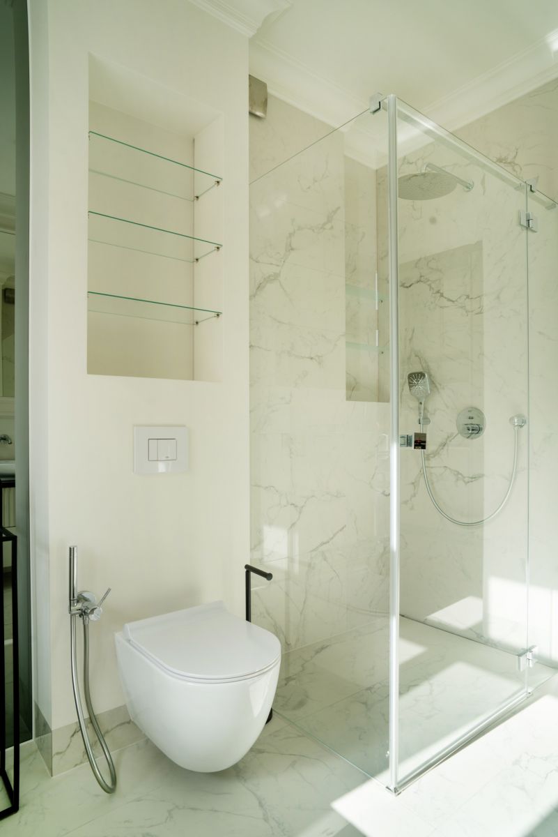 Samo mieszkanie jest wykończone w wysokim standardzie i dobrej jakości materiałami, m. in. włoski gres marazzi, armatura Grohe/hushlab, marmurowy portal kominkowy.