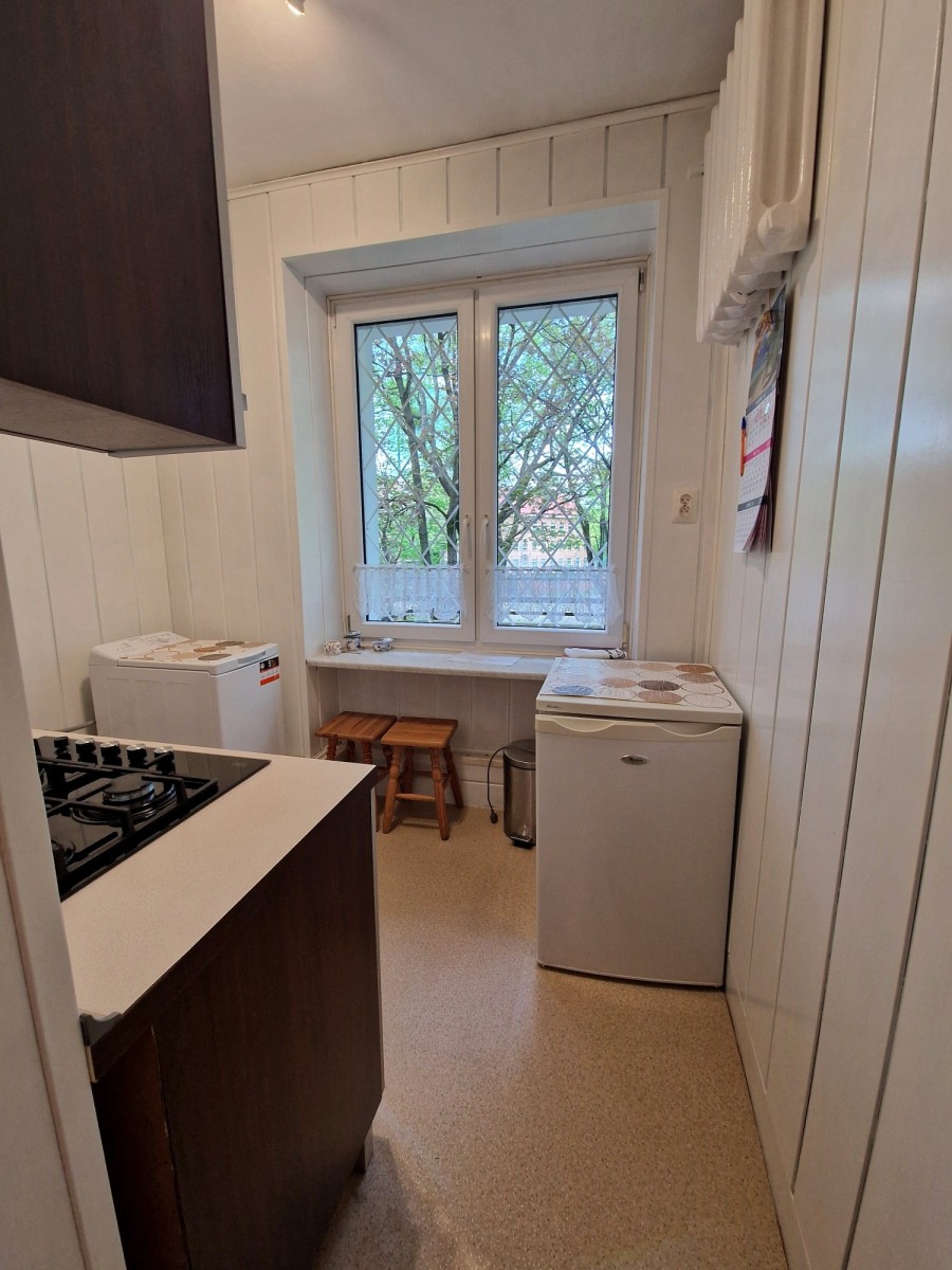 Mieszkanie po odświeżeniu, w większości nowe meble i dodatki. Lokal usytuowany na 1 piętrze w 4 piętrowym budynku z cegły z lat 50-tych, ekspozycja dwustronna południowo-wschodnia. Mieszkanie o pow. ok. 30 m2 składa się: oddzielnej kuchni z oknem, pokoju, łazienki, przedpokoju. Mieszkanie zaaranżowane w bardzo funkcjonalny sposób. Kuchnia wyposażona (lodówka, pralka, okap, płyta gazowa, piekarnik itp.). W pokoju komplet wypoczynkowy z funkcją spania, ława, telewizor, szafa. W łazience wanna . Z pokoju wyjście na balkon. Wszystkie okna wychodzą na podwórko, przez co mieszkanie jest bardzo ciche. Do lokalu przynależy piwnica.